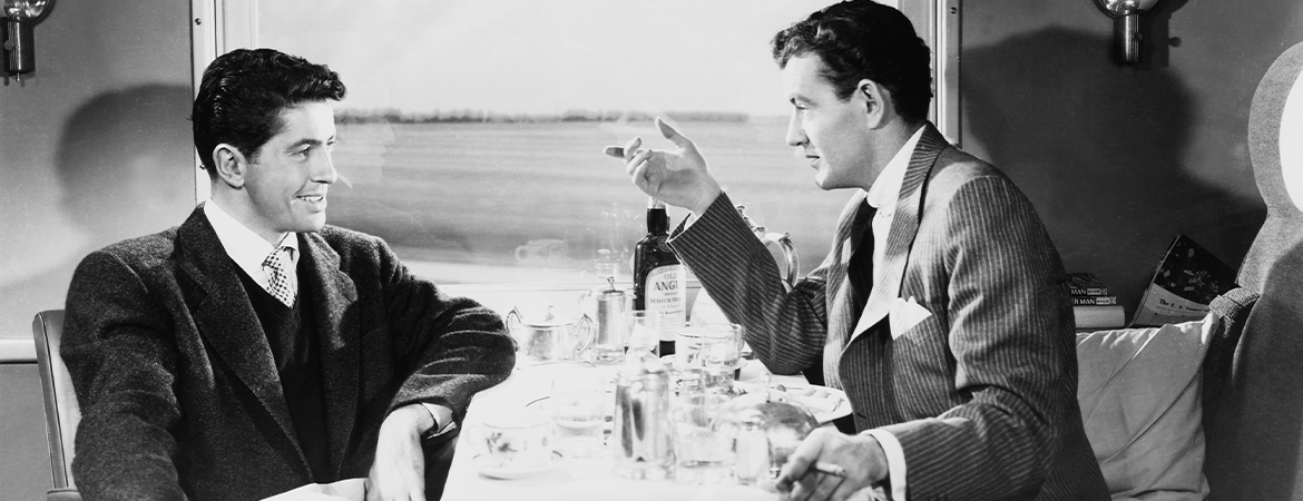 Guy, a famous tennis player, strikes up what seems to be an innocent conversation on a train with the smooth-talking Bruno, who already knows who he is. When Guy confesses that he wants to leave his wife but cannot persuade her to agree to a divorce, Bruno—complaining about his domineering father—introduces his theory of the perfect crime: if two strangers commit murders on each other’s behalf, there will be no apparent motive and therefore no way to identify the culprit.